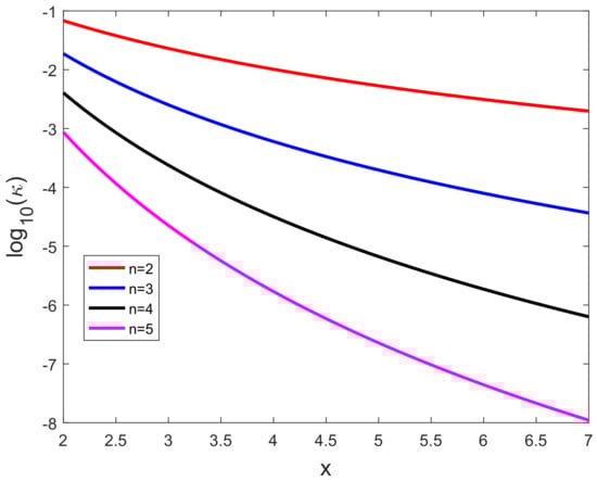 Figure 7 presents the logarithm of the extrinsic curvature versus x. The extrinsic curvature is completely determined by the first and second derivatives of the non-linear function h and it is evaluated while using the true x.