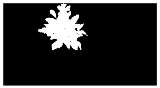 Finally, the largest connected domain was saved as the target potato plant, and other connected domains were removed as noise. Then we obtained the mask image (binary image).