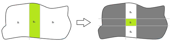Using vertical lines, and according to these values, the area S is divided into three sub-areas: , and .
