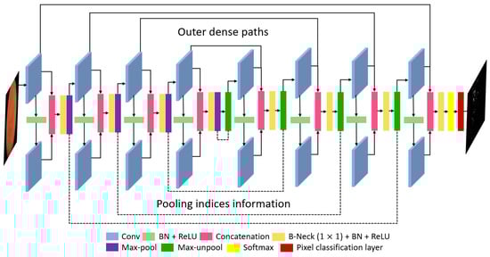 - Badrinarayanan, V.; Kendall, A.; Cipolla, R. SegNet: A deep convolutional encoder-decoder architecture for image segmentation. IEEE Trans. Pattern Anal. Mach. Intell. 2017, 39, 2481–2495. [Google Scholar] [CrossRef]