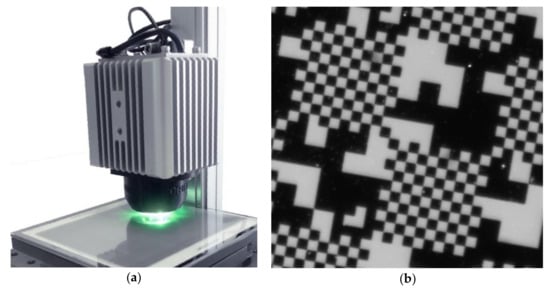 While a number of encoders provide information on a single co-ordinate (i.e., linear or angular encoders), some can provide several co-ordinates in a single reading [2]. This is the case of position encoders that are based on vision systems. These encoders record the image of specially engineered scales and determine, through software treatment, linear co-ordinates x, y and orientation φz of the scale [3,4,5,6,7,8,9,10,11,12,13]. In vision-based encoders, a significant variety of base patterns have been used to construct coded scales, and a significant variety of imaging systems have been used to read the scales, ranging from high-quality microscopes to cheap cellphone cameras. While the general principle of vision-based 3-degree-of-freedom (3-DOF) position sensors has been documented in works published by different groups, implementations differ depending on intended sensor uses. Sensors based on this principle were developed in the context of microscopy [4,5,12], robotics [8], metrology [6], quality assurance (QA)/quality control (QC) and motion control [10,11,12,13], or general purposes [3,6,9].