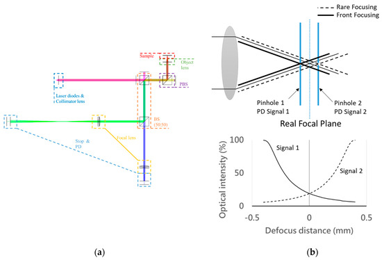 - Liu, C.S.; Song, R.C.; Fu, S.J. Design of a laser-based autofocusing microscope for a sample with a transparent boundary layer. Appl. Phys. B 2019, 125, 199. [Google Scholar] [CrossRef]