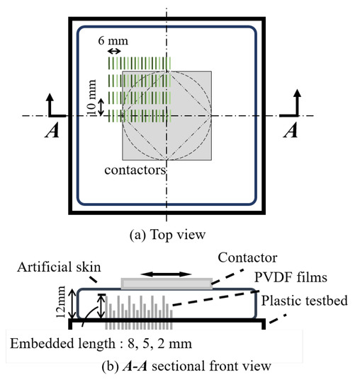 - Li, F.; Akiyama, Y.; Wan, X.; Yamada, Y.; Okamoto, S. Shear Stress Sensor for Soft Material with Built-In Piezoelectric Polymer Films. In Proceedings of the 2019 IEEE 8th Global Conference on Consumer Electronics (GCCE), Osaka, Japan, 15–18 October 2019; pp. 656–658. [Google Scholar]