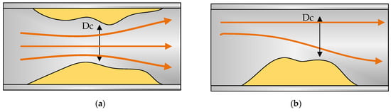 Partial blockage: (a) the salt has solidified all around the entire surface of the pipe, (b) the salt has been deposited on a specific area of the pipe. Both blockages define the same section.