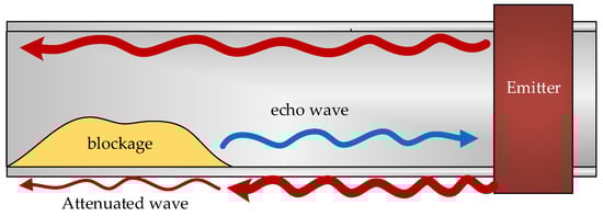 Blockage detection. Once the ultrasonic wave reaches the blockage, it produces an echo that can be used to determine its position, but the wave continues, with certain attenuation, in the same direction. The attenuation introduced by the blockage depends on the material.
