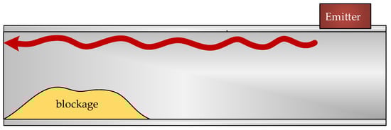 Acoustic wave generation is a non-intrusive and also quite common technique that has allowed for the detection of defects in pipes in numerous applications (petrochemical industries, for instance) during the last 20 years [10,11,12,13]. This technique is based on waves that travel along the pipe and bounce off those defects, thus providing information that can be analyzed.
