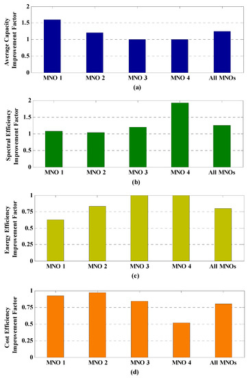 Hence, the factor representing an improvement in SE due to applying DESA can be expressed, respectively, for an MNO o and all MNOs countrywide as follows.