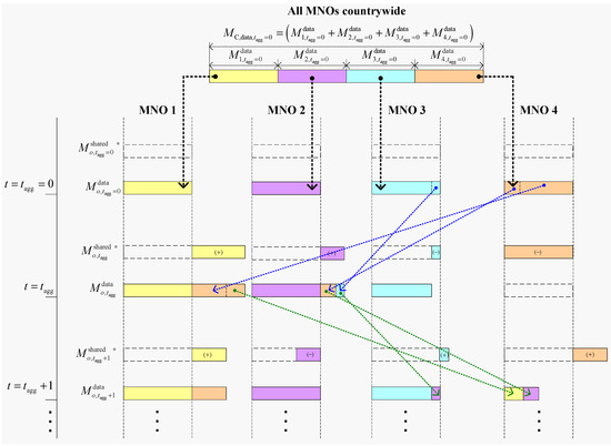 Because, in general, the number of subscribers of one MNO differs from another, for simplicity, we assume that at agreement term tagg such that holds satisfying Constraint 1(b).