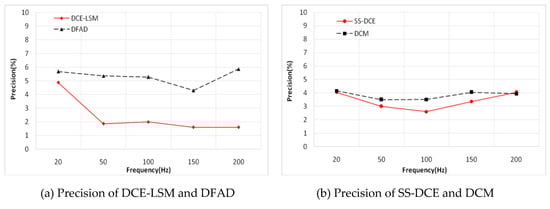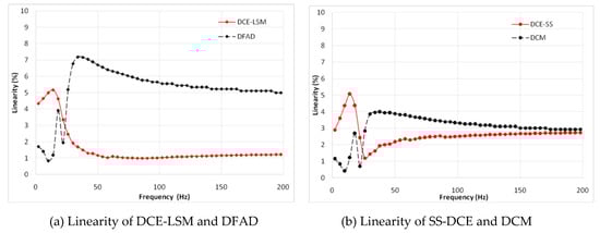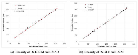 Moreover, the above results present that both the DCE-LSM and SS-DCE outputs differed by less than 7.5 µm from the reference signal of the theoretical model in the 50–250 µm range when the test frequency was kept away from the natural frequency. This was primarily attributed to the adequate data obtained for estimating the working coil current.