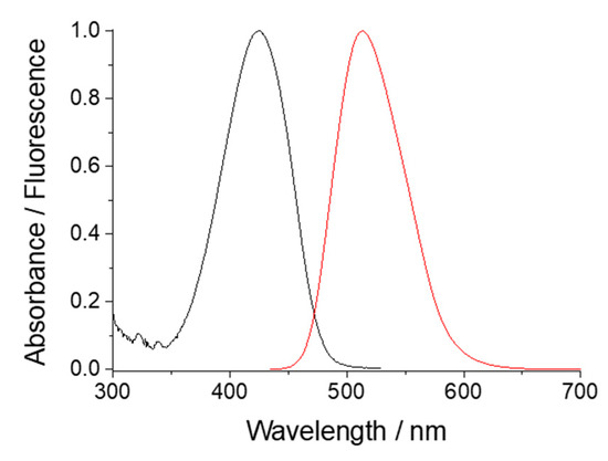 The absorption and fluorescence spectral bands of the 1,8-naphthalimide derivatives largely depended on the electron donating power of the substituents at the C-4 position. Figure 2 plots an example of the absorption and fluorescence spectral profile of NI in an acetonitrile solution. In the case of 4-substituted-1,8-naphthalimide derivatives, a donor-acceptor interaction took place between the substituent at the C-4 position and carbonyl groups, which caused a band formation in the absorption spectra with a charge transfer character. The figure also shows that the absorption and fluorescence spectra were mirror images with a small overlap area, which is an indication that no aggregation processes occurred at this concentration. Similar spectral curves were observed in all other studied organic solvents.