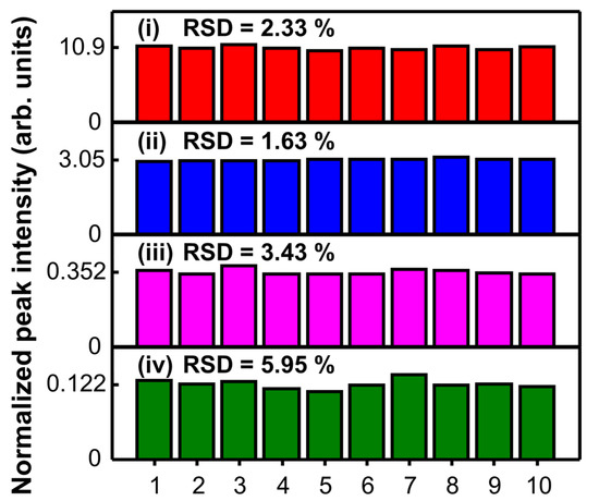 3.4. Reproducibility of SERS Intensity of SiO2@Ag NPs Reacted with AOH