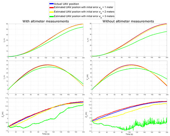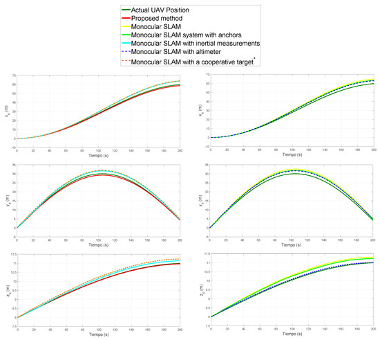 Table 5 summarizes the Mean Squared Error (MSE), expressed in each of the three axes, for the estimated position of: (i) the target, (ii) the UAV, and (iii) the landmarks.