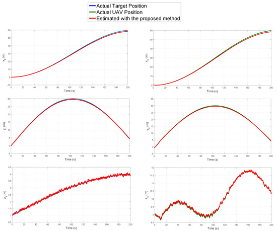 Estimated position of the target and the UAV obtained by the proposed method.