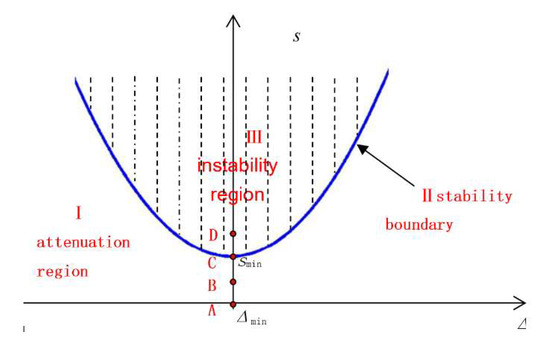 Equation (12) determines the stable boundary conditions of the resonator with parametric excitation, as shown in Figure 5.