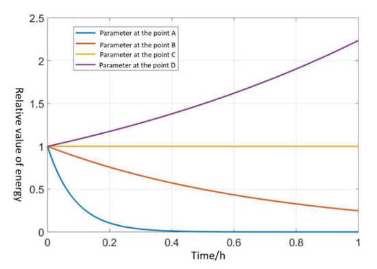 The ratio of total energy to the initial total energy with different excitation parameters is shown in Figure 8: