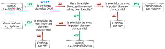 A flowchart for choosing a recognition element for biosensors, adopted from [77]. Reproduction permission granted by ACS Publishing.
