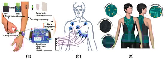 - Ray, T.R.; Choi, J.; Bandodkar, A.J.; Krishnan, S.; Gutruf, P.; Tian, L.; Ghaffari, R.; Rogers, J.A. Bio-integrated wearable systems: A comprehensive review. Chem. Rev. 2019, 119, 5461–5533. [Google Scholar] [CrossRef]