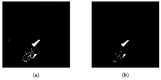 Appropriate selection of the threshold for adjusting the output image results in filtering out low-contrast changes. These changes may represent slight added shadows, or large changes in brightness may also be perceived as an undesirable finding. In order to increase the robustness of the filtration system, it would be advantageous to use two threshold levels, that is, multi-level thresholding. However, in the described solution, such filtration was not used in order to demonstrate the behaviour of the described detection methods.