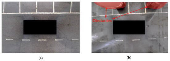 The AVM images of two test scenarios: open scenarios and occupied scenarios. (a) An open scenario; there is no other obstacles around the vehicle, (b) An occupied scenario; there are other obstacles around the vehicle.