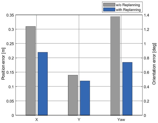The comparison of average errors between the proposed algorithm and the planner without re-planning.