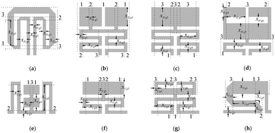 Strategies for design of cell-based miniaturized BLCs fall into two categories: (i) development of CCs tailored for specific problem and (ii) selection of the cells from the pre-defined library. The first approach benefits from high miniaturization rates [24,29,33], but it is also laborious and time-consuming [24,29]. The process follows the concept of cognitive design [34]. It involves a manual experience-driven development of cells, but also maintaining their geometrical consistency with adjacent components. The latter is often achieved through definition of complex geometrical relations between individual cells [35,36]. Reuse of pre-defined CCs simplifies BLC development [16,32,37], but at the expense of more modest miniaturization rates. It is worth noting that, for the majority compact of BLCs, miniaturization is achieved as a by-product of performance-oriented tuning rather than dedicated design approach [31,33,38]. Nonetheless, small couplers, obtained as a result of explicit optimization w.r.t. electrical performance and size, have also been reported [39,40].