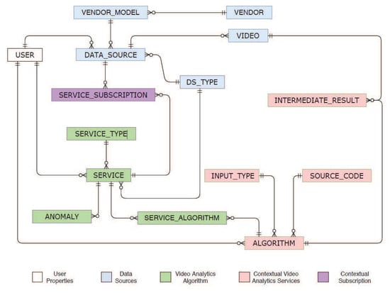 The IVA algorithms and services are managed through Video Analytics Algorithm and Service meta-store, respectively. The metadata of an IVA algorithm are managed through ALGORITHM metastore, and the data structure is composed of eight different data fields, i.e., AID, UID, algoType, algoName, input, output, requiredResources, sourceCodeAddress, and description. The metadata of the IVA service are managed through SERVICE metastore and encompasses attributes like SID, UID, dsTypeID, serviceTypeID, serviceName, and description. The relation between the service and algorithm metastore is managed through a lookup table called .