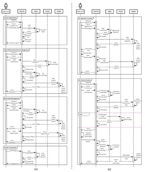 Raw Video Space is used for the management of the video data. The Raw Video Space is further divided into two types of videos. The first type is the batch video, which has been uploaded for batch analytics, where the second type is acquired and persisted from the video stream sources. The entire acquired stream is timestamped on persistence. The granularity level of raw streaming videos is maintained through video data sources. The IVA life cycle may need different models for training and testing purposes. The Model Space is provided to facilitate the users to manage the training and testing models according to the deployed IVA algorithm. Similarly, the developer can develop a new algorithm or service. The Project Space is provided to manage the source code of the respective developer.