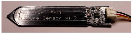 In Figure 3 the used commercial, blade-shaped, “Capacitive Soil Moisture Sensor v1.2” is portrayed.