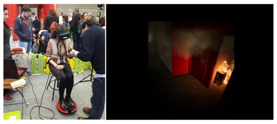 Another example is the study by Gamberini et al. [25] In this study, users encountered different emergency scenarios with varying degrees of intensity. The results showed that, once the emergency began, it caused significant changes in people’s movements. It can therefore be inferred that a virtual risk situation will produce adaptive responses and that Virtual Reality may be suitable for emergency simulations.