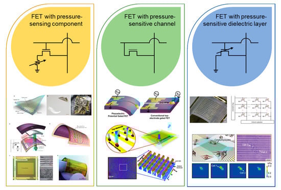 3.1. FET-Based Tactile Sensor Arrays with Pressure-Sensing Components