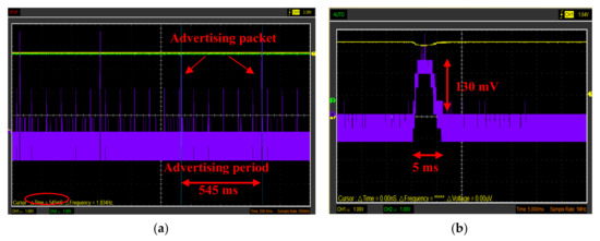 The designed sensor tag uses the HM-10 BLE module (manufactured by Jinan Huamao Technology co, Jinan City, China) based on CC2541 Integrated Circuit (IC) (manufactured by Texas Instrument, Dallas, TX, USA), a system-on-chip (SoC) combining a 2.4 GHz BLE transceiver, compliant to Bluetooth v4.0 protocol stack, with an 8051 MCU, featured by 128 KB flash memory, 8 KB RAM and several supporting features and peripherals (i.e., 12-bit ADC, 23 General-Purpose I/O Pins, Watchdog Timer). The wide range of peripherals and the integrated BLE transceiver, implementing the v4.1 BLE stack, along with the advanced PMU are the main reasons that justify the choice of CC2541 IC for the implementation of the BLE smart tag. It has three distinct low-power modalities (i.e., PMi, i = 1,2,3) with increasingly lower current consumption, making it ideal for portable devices, wearable applications and consumer electronics. The CC2541 was programmed using CC debugger and programmer, employing IAR Workbench for 8051 MCU.