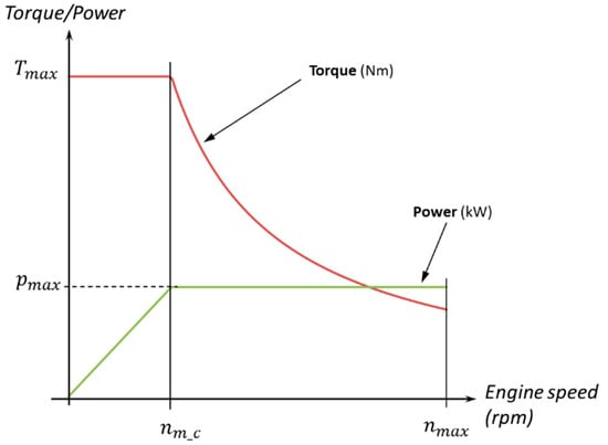 where is the motor torque and , the rotational speed. The changeover point between maximum torque and constant power (cut-off speed, ) is defined as: