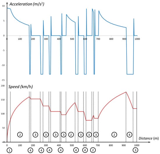 The whole track is simulated, obtaining the overall time and overall energy consumed by the vehicle. The evaluation of the tractive or braking force is discussed in the following subsection.
