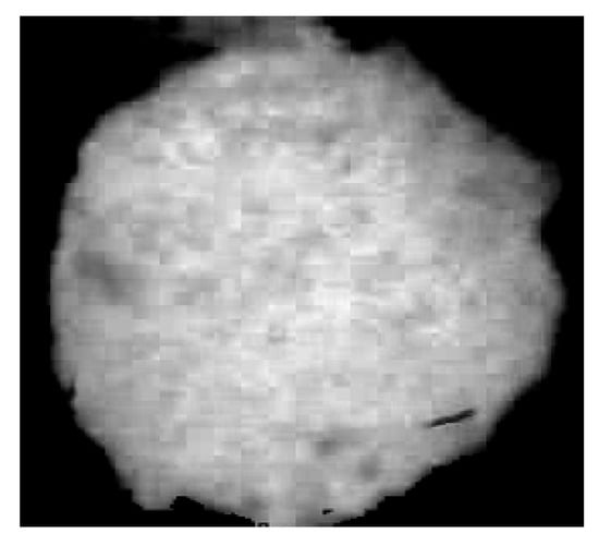 where is the red channel, is the saturation channel, is the blue channel, is the hue channel, and the operator indicates the image complement (negative image). In such an image, the background results are removed, and the pixel intensity results to be proportional to the fouling volume, as it can be seen in the result shown in Figure 8.