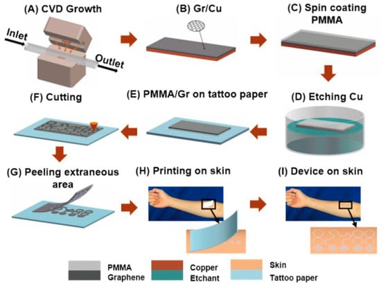 Fabrication process of a graphene electronic tattoo [62].