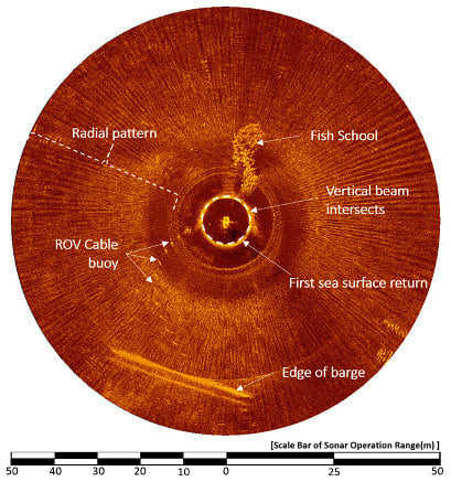 Horizontal sonar image under the support barge.