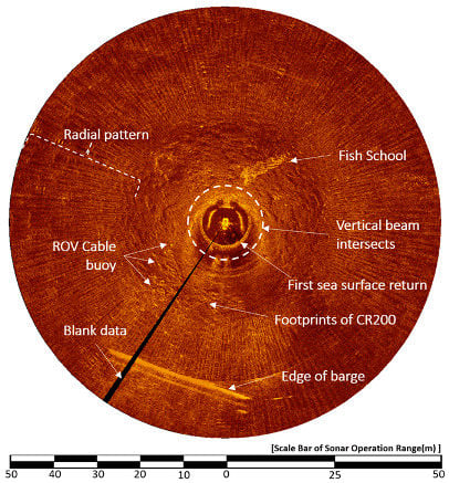 The 6° downward HHM sonar image under the support barge.