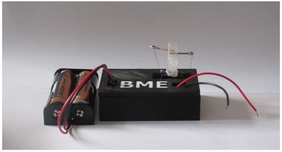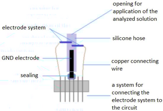 The main element of the electrode part is a set of electrodes (Figure 3), which are designed as a pair of small rollers interconnected by copper connecting wires with pinheads and a supply and measuring circuit. Each of the electrodes has a different function in the system, which is given by connecting the wires to the circuit. The electrodes are mounted in a silicone tube.