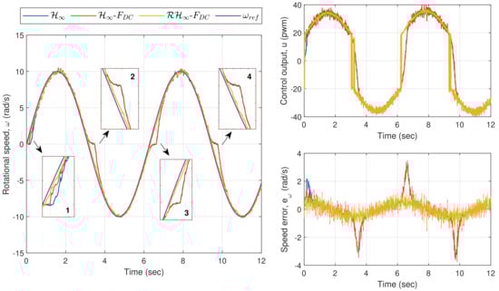 - Yao, J.; Jiao, Z.; Ma, D. Output Feedback Robust Control of Direct Current Motors With Nonlinear Friction Compensation and Disturbance Rejection. J. Dyn. Syst. Meas. Control 2015, 137. [Google Scholar] [CrossRef]