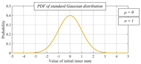 Regarding the initial states, they are independent and identically distributed random values of the standard Gaussian distribution (see Figure 10) in all of the experimental evaluations, i.e.,:
