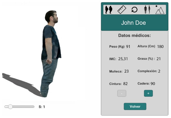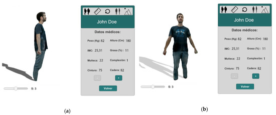 The second objective of this work is to provide a visualization system for presenting the generated 3D models. This system allows interaction with the acquisition subsystem, management of patient data, and a realistic visualization of the human body models over time. This system would be used both by the medical specialist to assist research in the field of obesity treatment and by the patient to improve their adherence to treatment by self-visualizing their improvement. Thus, the system is composed of two subsystems: the specialist 4D visualization system for obesity treatment and the virtual reality visualization system. Both parts, explained in detail next, were developed using Unity [33].