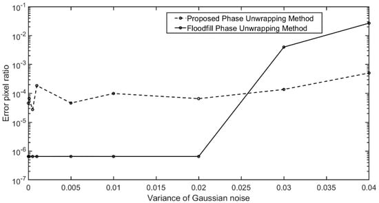 Error pixel ratio of the unwrapped phase for input dataset with different Gaussian noises.