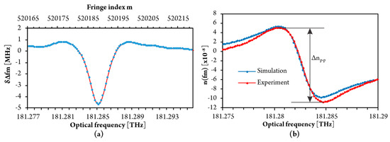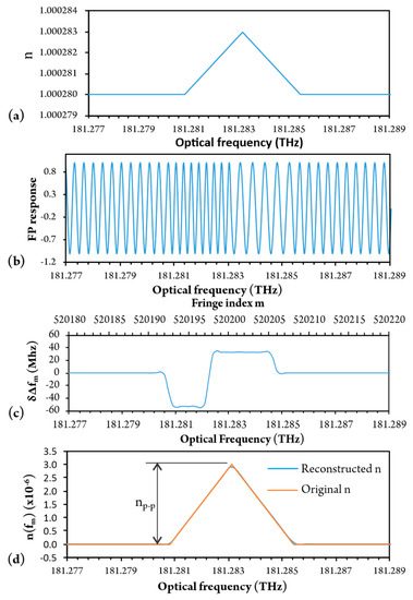m, as discussed in the initial part of this section. This change in the fringe period is summed according to Equation (8), in order to obtain RI versus optical frequency, as presented in