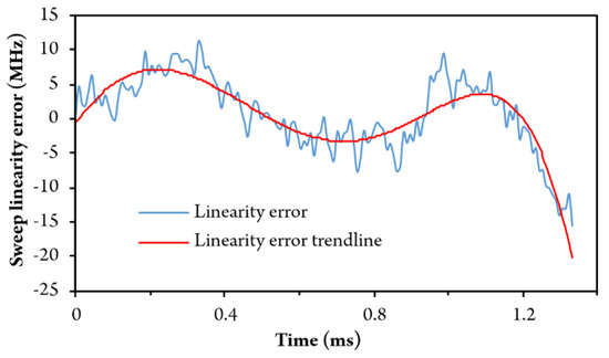 The entire process was repeated and, after several iterations, frequency sweep nonlinearity dropped below ±5 MHz, as shown in