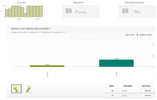 After each training, the subject could see the result obtained in a given game. After each game, the program analyzed the accuracy, number of points and precision of moves and also showed the progress that was achieved between individual trainings (Figure 4).