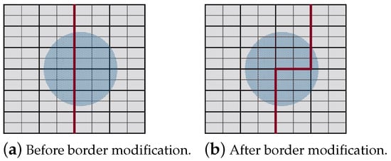 Grid-based area decomposition before and after subdivision.