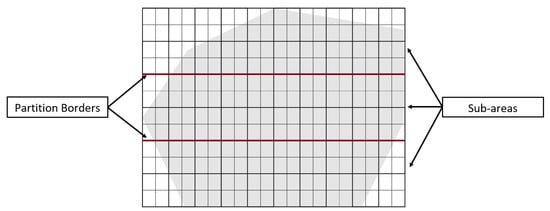 Different CPP approaches cover the areas using single or multiple UAVs [19,21]. The number of UAVs is based on the mission needs. In the presence of multiple UAVs, a safety margin must be taken into consideration to avoid collisions and ensure efficient collaboration between them. For collision-free missions, large areas are partitioned into subareas. Each UAV is allowed to cover one or more subareas. The area is divided by lines named borders that define the subarea’s margins.