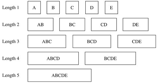An example for increasing number of sequences through adding sliding window. In this case, the original trajectory has 5 fingerprints with ids of A, B, C, D and E respectively.