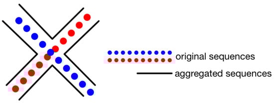 An illustration for sequence aggregating. After aggregating the original two sequences, 4 new sequences are generated.