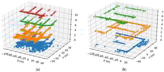 The geometric positions of fingerprints in (a) Building One and (b) Building Two. (The dataset is from Reference []).